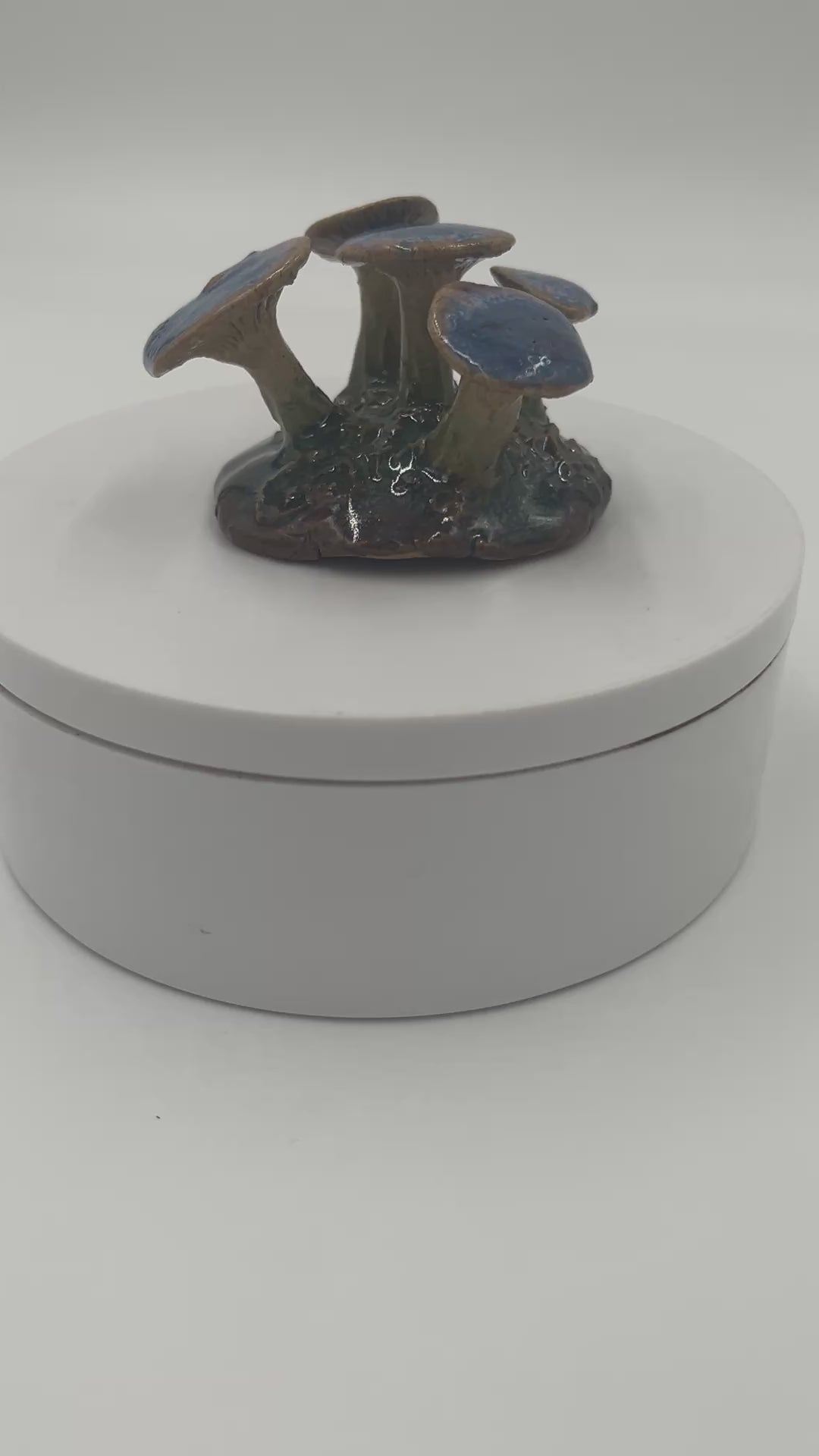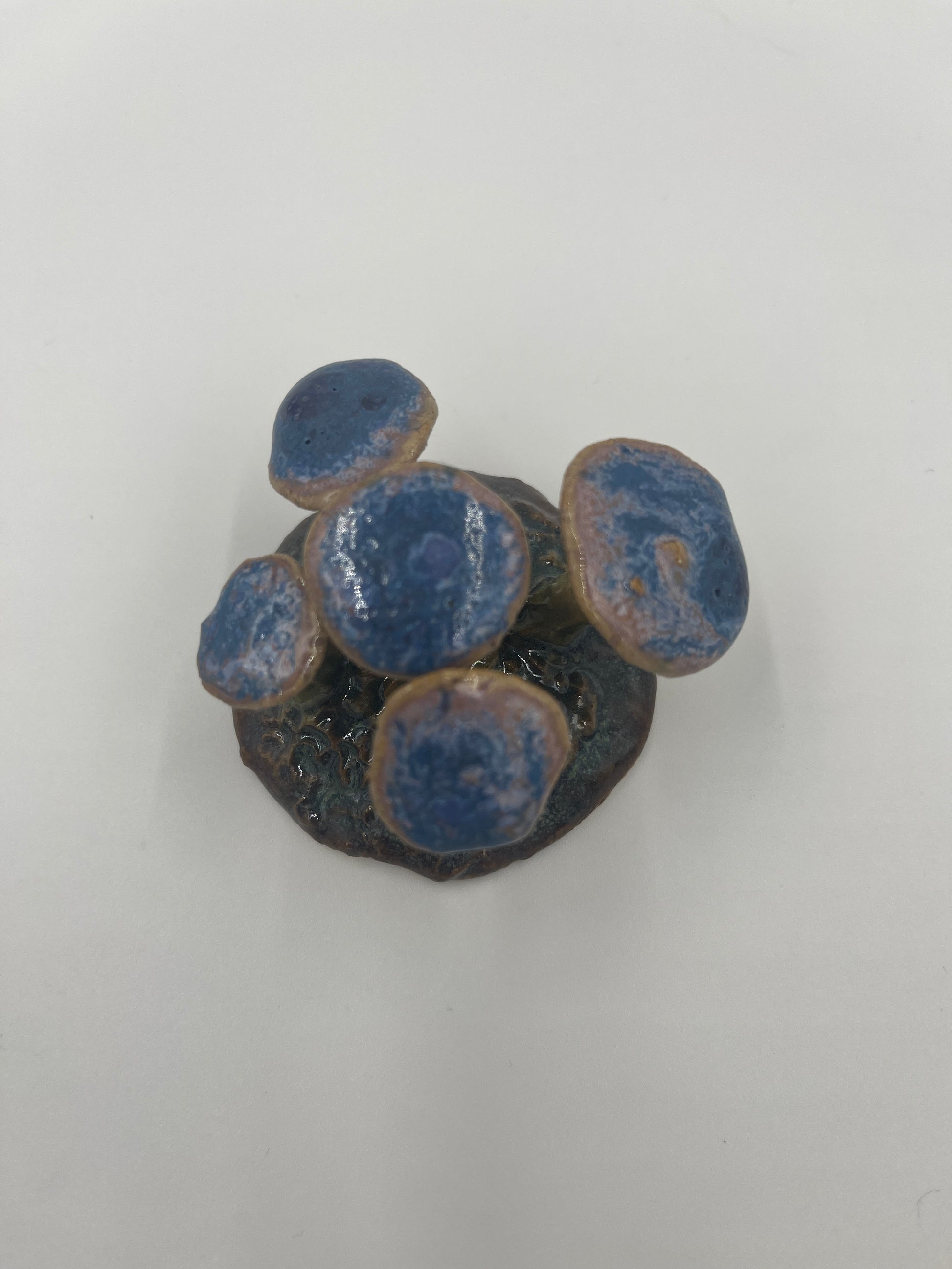 Beautiful hand built mushroom cluster with pink / purple speckled mushroom tops.
