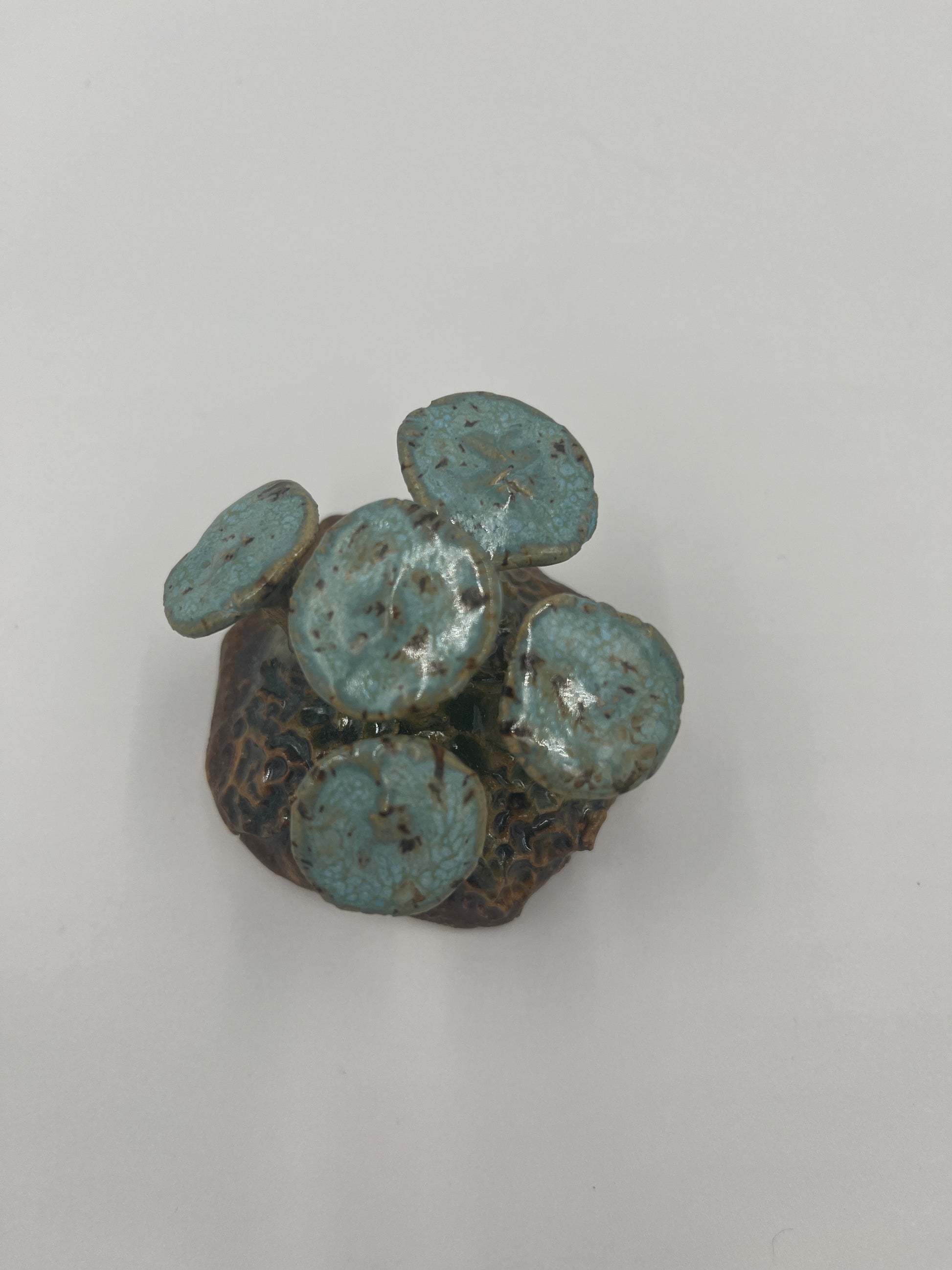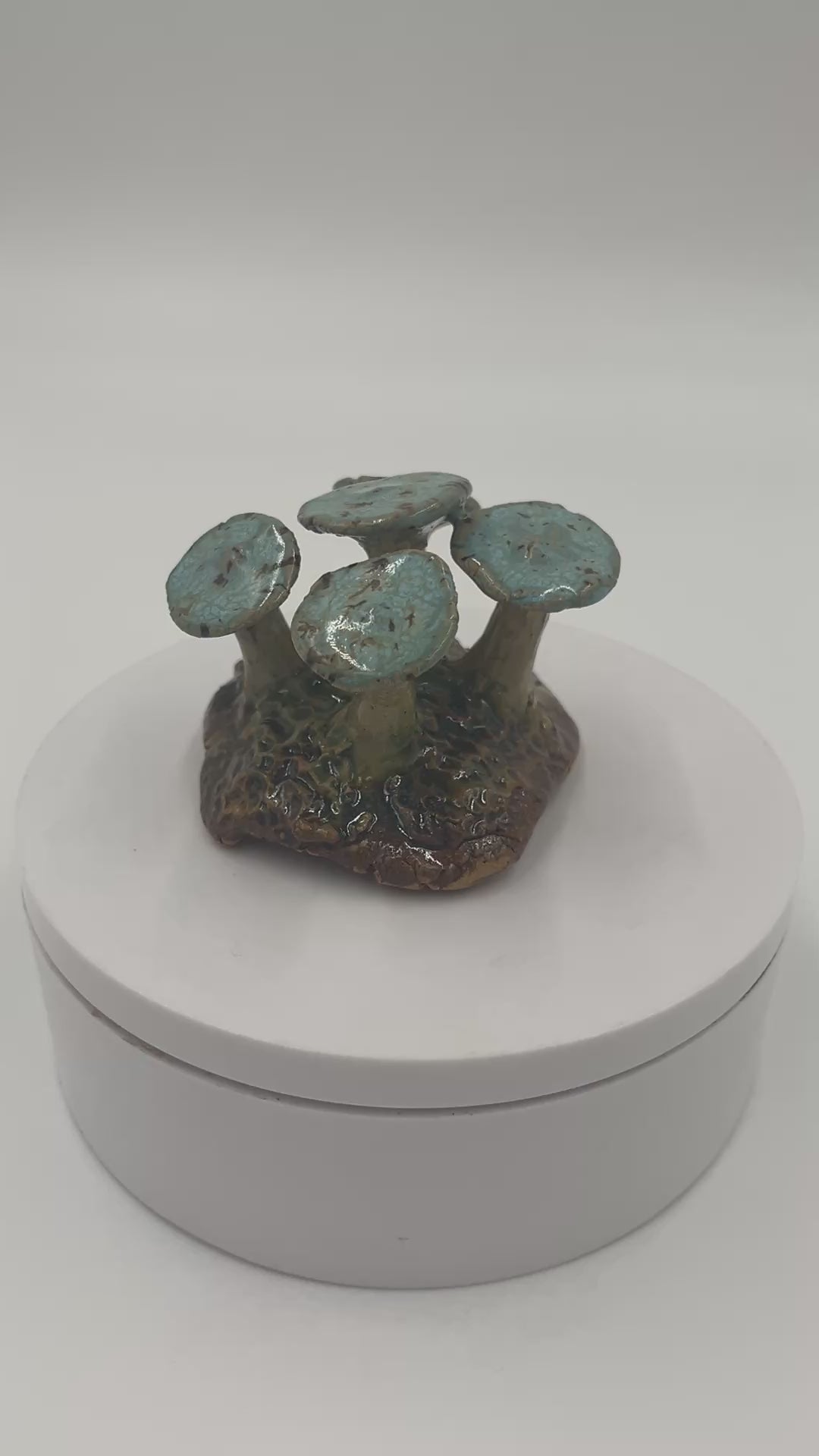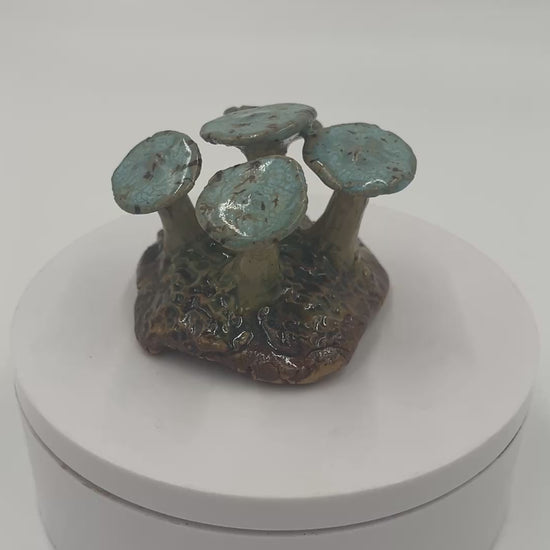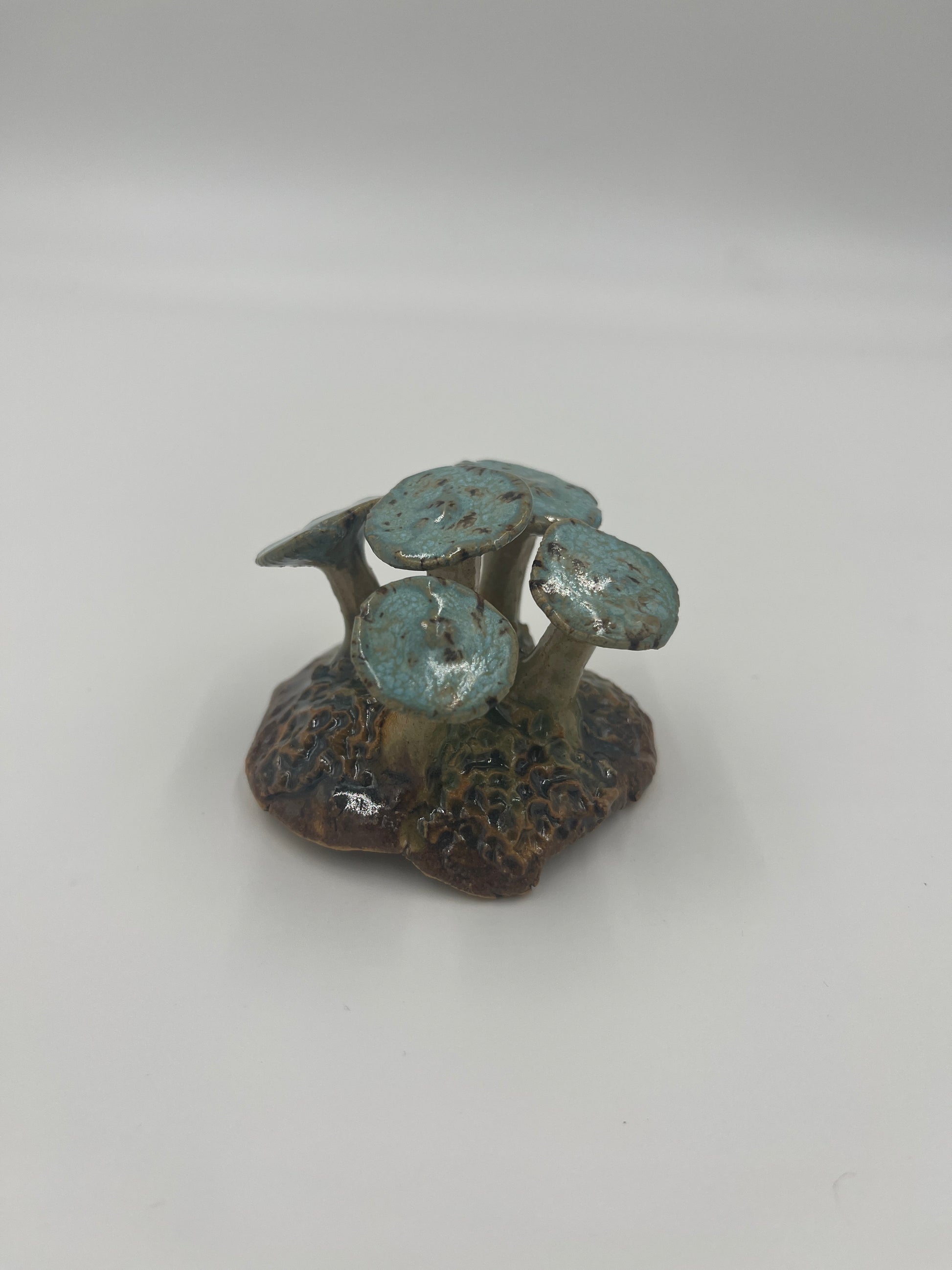 Beautiful hand built mushroom cluster with Blue Speckle mushroom tops.