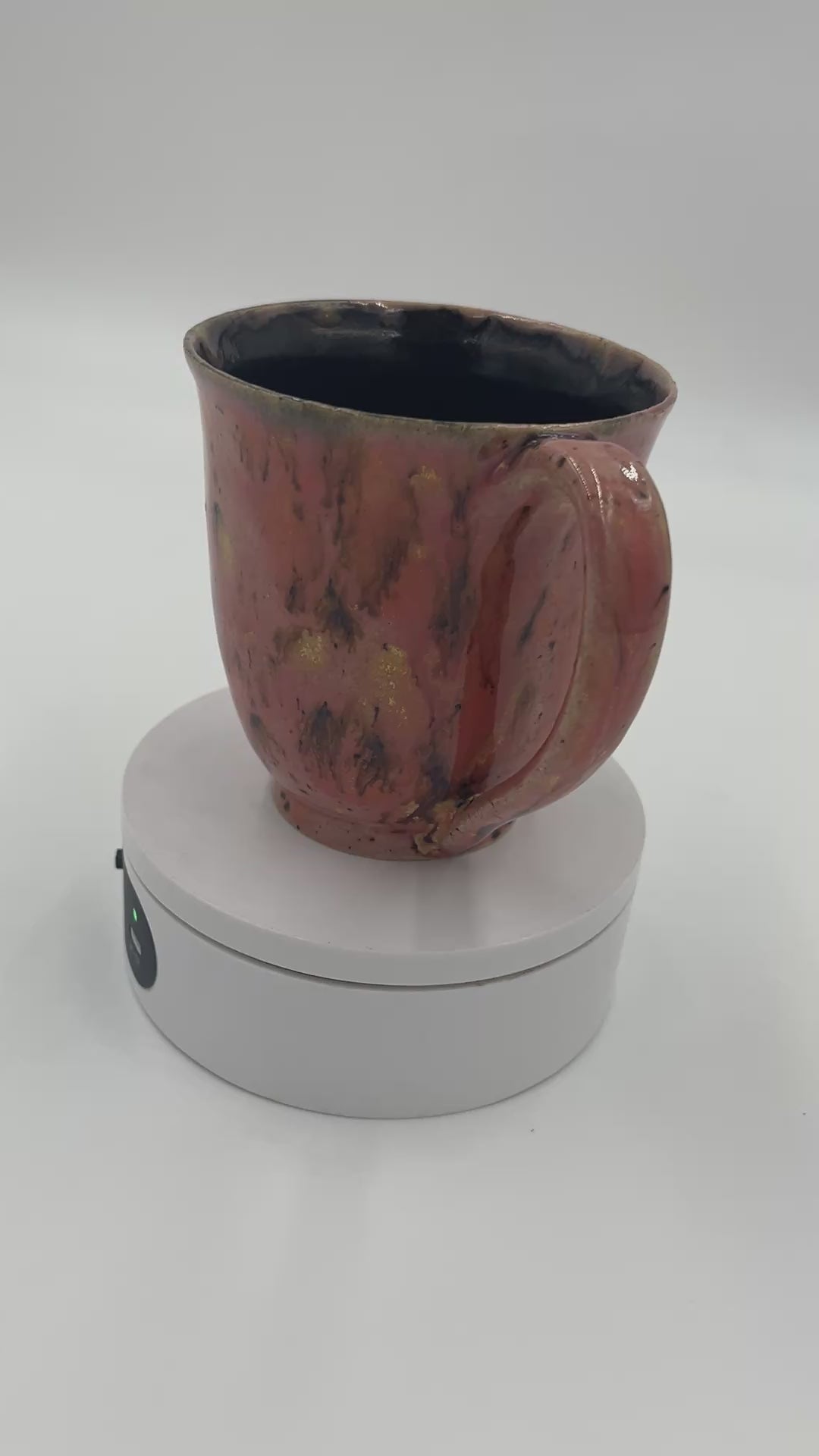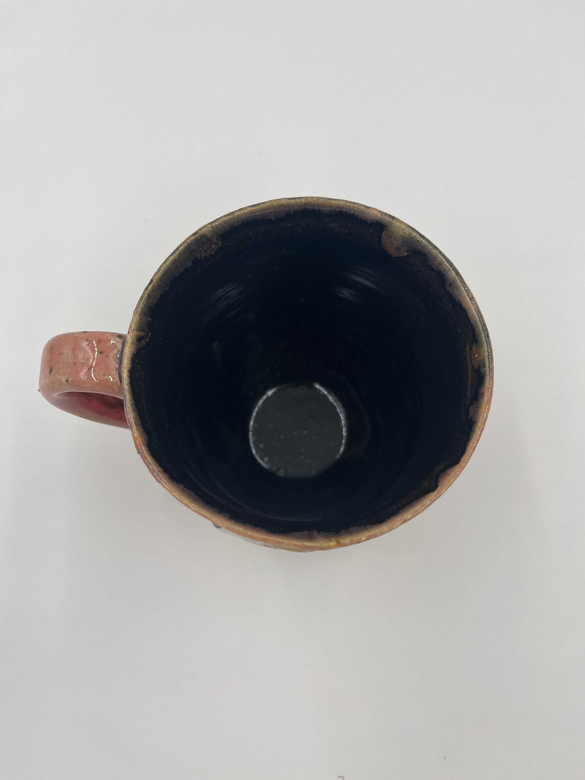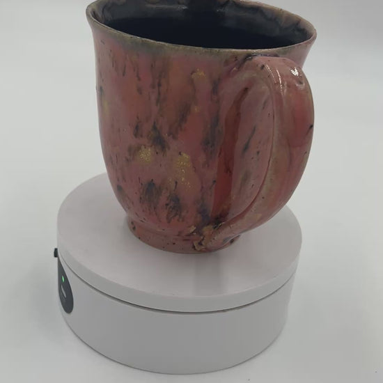 Beautiful wheel thrown mug with an adorable hand painted Corgi. This mug utilizes coral / orange speckled glaze on the outside.